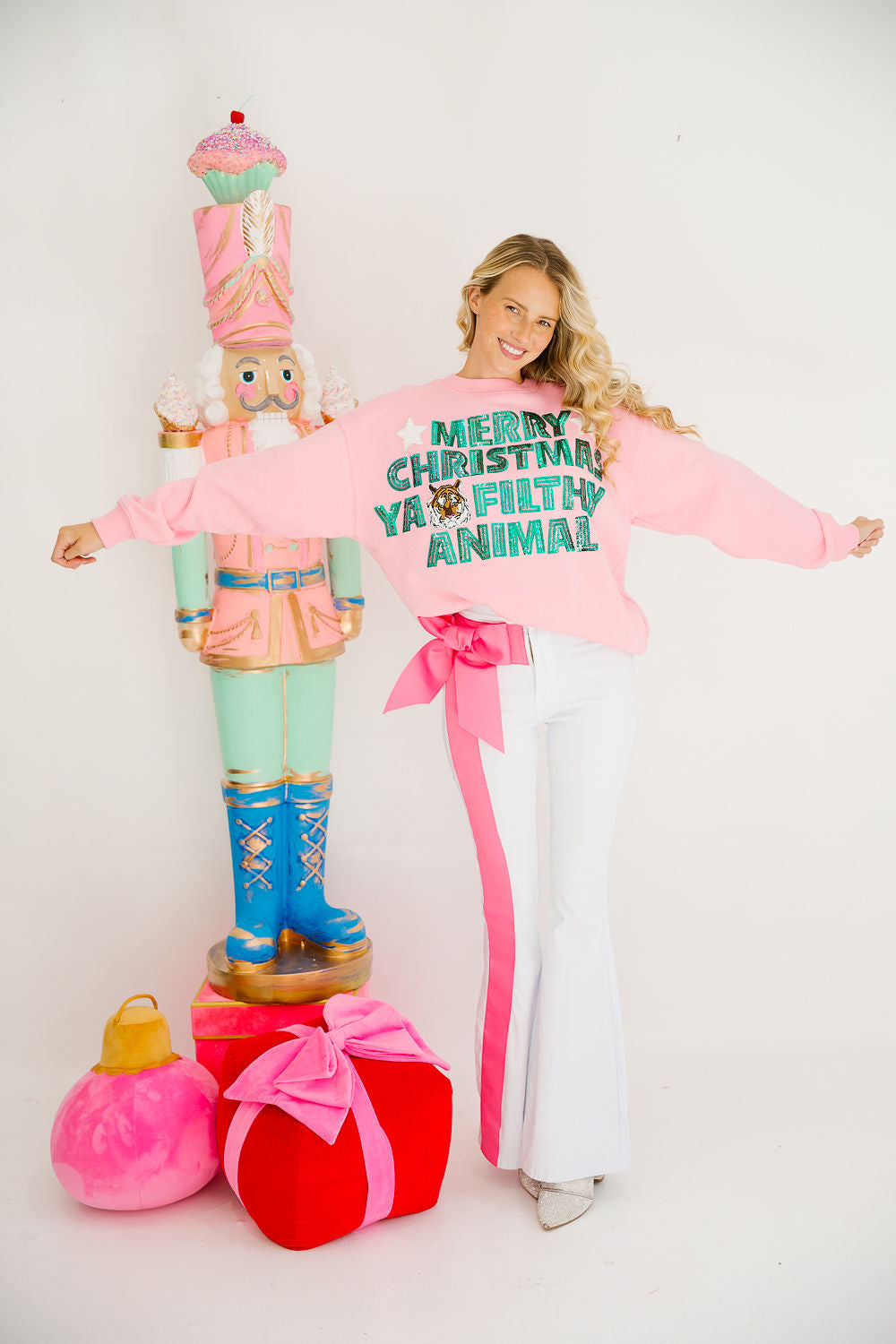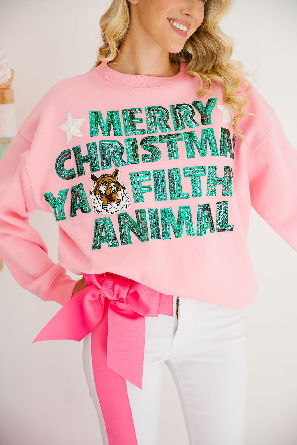 MERRY CHRISTMAS YA FILTHY ANIMAL PINK PULLOVER