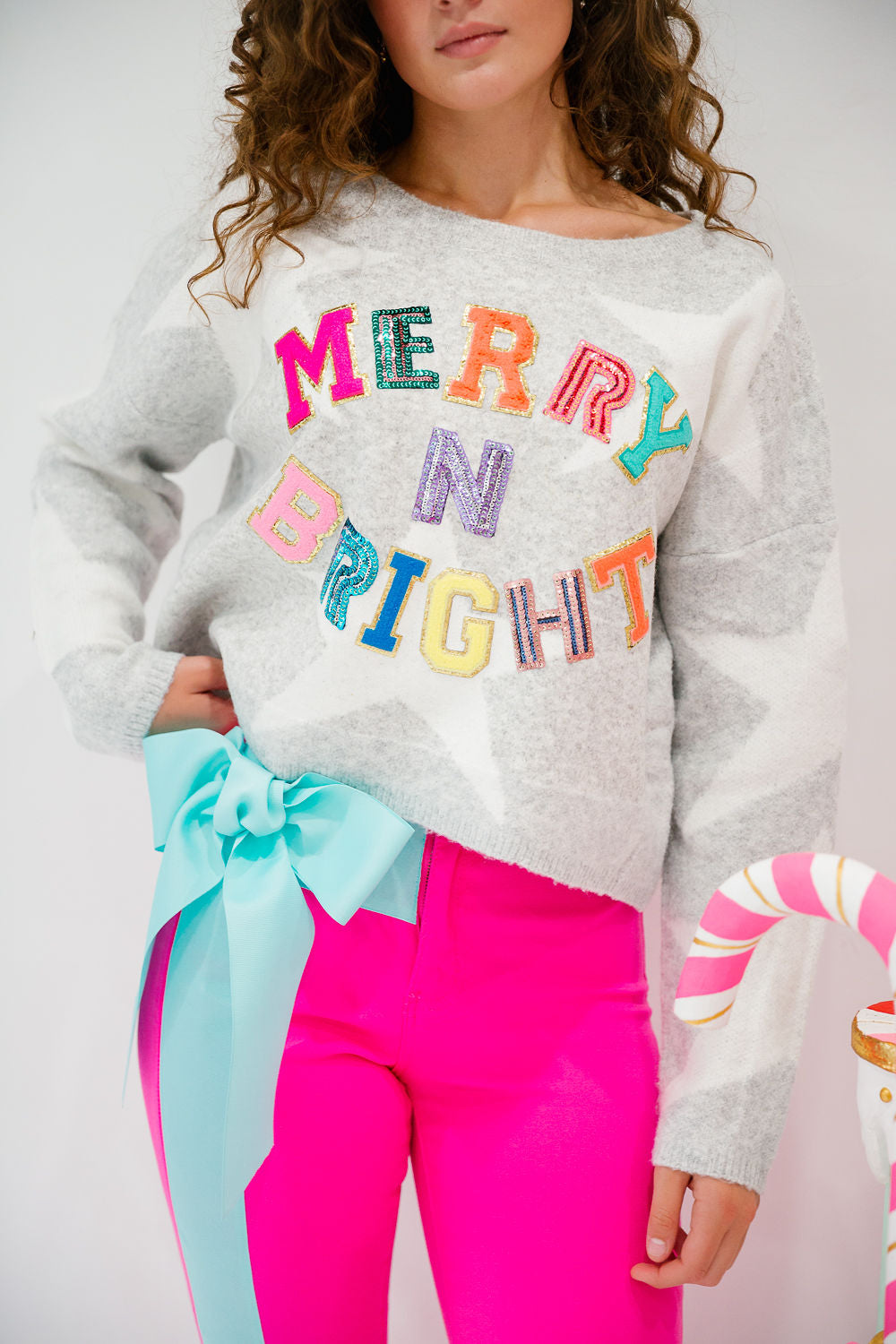 MERRY N BRIGHT GREY STAR SWEATER