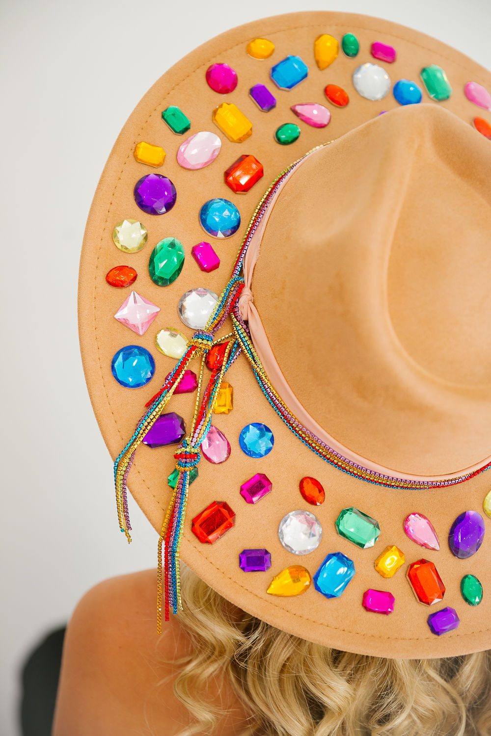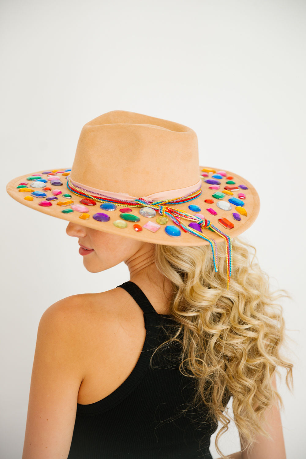 Add a burst of fun to your look with the Winter Jewel Rancher Hat, adorned with colorful stones for a dazzling, one-of-a-kind style. Designed by our owner Stephanie, this unique accessory brings vibrant sparkle and personality to any outfit, making it your standout winter essential.